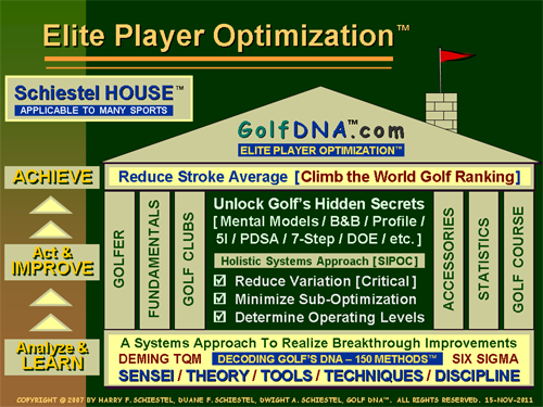 day, they will change the outcome of your results and your future." At Golf DNA, we offer the elite player a distinct competitive advantage with a proven Game Plan to realize breakthrough improvements by lowering stroke average. NOTE: it is our humble and honest opinion that world renowned golf coaches do not understand this emerging performance based Body of Knowledge for elite athletic performance, since they were not formally trained in it. Therefore, they are ill prepared and are not masters at working with an athletic client to implement this new way of thinking and learning on 'how to improve' to gain further entitlement, aimed at true player optimization. In addition, the better your game, the fewer coaches exist who can actually help take your game to the next plateau.